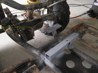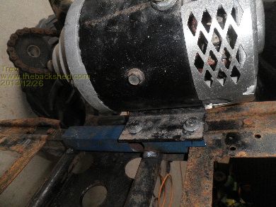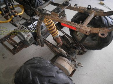 First up was to get the motor mounted. The motor had to sit out a little into the foot rest area so the sprockets and chain lined up. The front mount was quite simple. Just welded a piece of box tube across the 4 wheeler frame for motor to sit on, bolt to. The back one had to be cut to mould into the 4 wheeler frame on an angle. All good, painted and bolted in the motor.