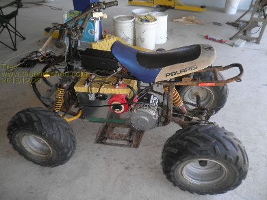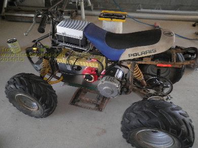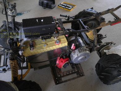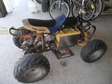 Converting a 4 wheeler motor bike to electric drive has been on the cards for a very long time. Dale (son) and I bought a Polaris Scrambler 90cc many years ago. I also bought the 12v speed controller many years ago, which would be around the time I took out the 12v motor that used to drive the power steering and air conditioner in my EV Hilux. The plan was that this 12v motor would be the drive motor for the 4 wheeler.