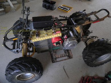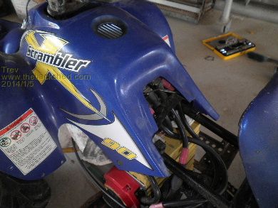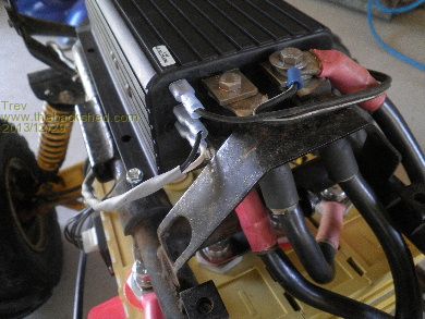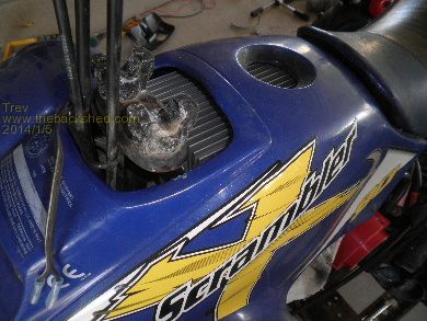 Then mounted it back in the 4 wheeler. It is higher and further toward the front of the 4 wheeler so it would fit under the plastic cover.