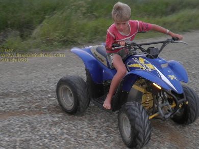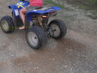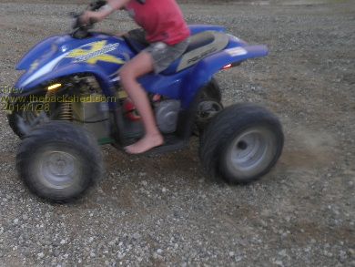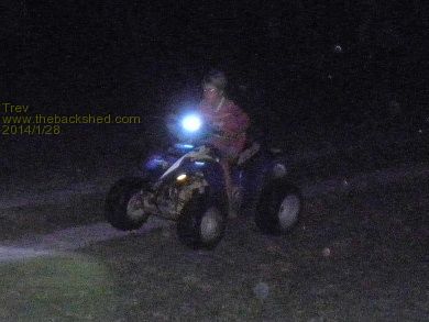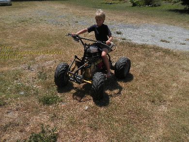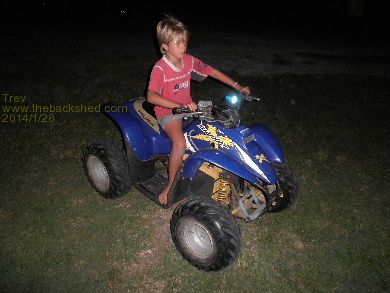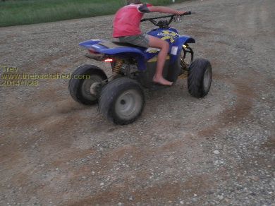 Dale took it out for a spin. Went better with the lighter body on it. He rode across the farm to my sister's place, about 2 km one way. Rode it around their rally track. And back home again. I followed on my big Polaris Scrambler 500cc.