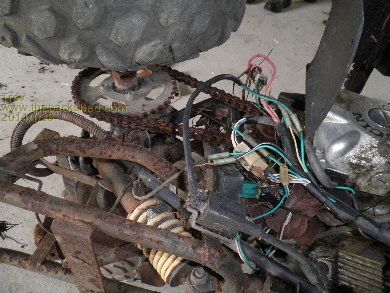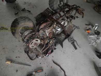 We had this old bike lying under a tree for some time. Looking and thinking, we decided to strip the wheels (Dale wants another trailer to tow behind the electric 4 wheeler) and the sprockets for adding to Dale's 4 Wheeler.