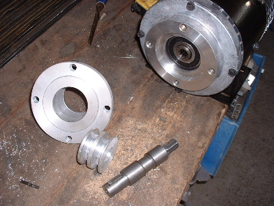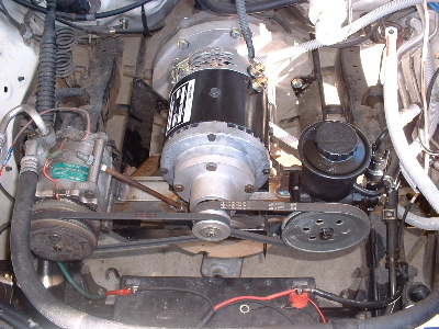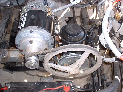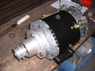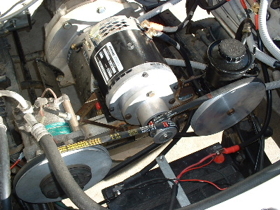 Next is the air conditioning and power steering. The original idea was to have a seperate motor direct drive on each pump. (As seen by previous posts with the testing of the starter motor). This Hilux steers quite easy without it, but the rule says it must stay and some vehicles do require it, so we make it work, and learn the drama's. I believe it is possible to swap steering boxes with the same type of vehicle that does not have power steering. The motor is a 12v series wound Advanced DC. With the change of mind in application, a short shaft needed to be fitted for a set of pulley's. This changes the direction of spin, compared to direct drive, but thanks to ADC in the States they sent me the wrong one. It spins the right way. The brackets will be painted in due time. The standard size pulleys were used and the current draw was quite high. So a larger pulley was adapted to the power steering. It made no difference to the current draw so we assumed that was just the power consumption to run the motor, but it did allow the motor to spin faster. So we set out to cast and machine 2 new pulley's. With the 2 larger pulley's the amp draw is now 150 amps, both pumps running. The air-conditioning still cycles on and off, as normal. Trev @ drivebynature.com |