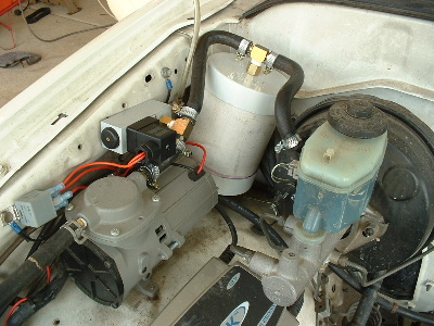 Vaccum is now fully automatic. A fully adjustable, lower and upper limit vaccum switch has been added along with a tank to hold a permanent vaccum. Feels just like the original braking, instant vaccum. It used to be connected to the brake pedal and switched on by pressing the brake pedal. The problem is that it would stay on all the time the foot was on the pedal, even stopped, like traffic lights. This also had a second or so delay in vaccum. Trev @ drivebynature.com |