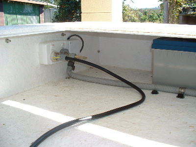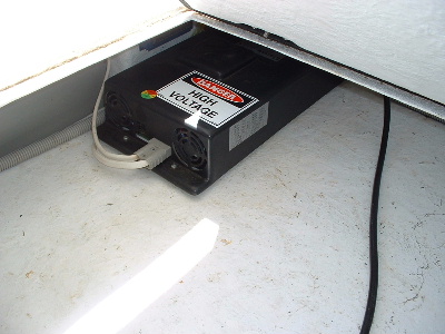 It was suggested that the vehicle be made not drivable while on charge. So while the tray was off, external / internal 240v AC power was added. Also a relay added, that disconnects the 12v supply to the main contactor, thus making it unable to be driven when on charge. An extension cord was used to tranfer power to the front of the vehicle (through flex conduit) for the 12v charger. Trev @ drivebynature.com |