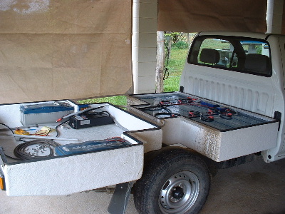 There is some battery problems. I had done about 50 km of driving and at the destination discovered that the 2 batteries in the rear box had become so hot that the plastic case had softened and swelled like footballs. The top is no longer sealed. The worst one was removed and replaced with the 13th one purchased at the same time. This swelled one is still working connected in with the wind and solar setup. The other swelled battery is still in the EV and still working.