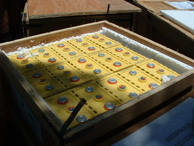 We have received the first order of Thundersky Lithium cells. Our pack is part of this order. I made a small error in not checking the input voltage to the charger. I had assumed the input was 240v single phase, but it is 380v 3 phase. So this one has to go back and they will sent another one. We will fit our Thundersky Lithium as soon as we recieve the other charger.