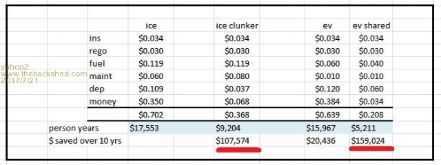 Actually the clunker could be free to buy and the running costs are still more than the shared EV