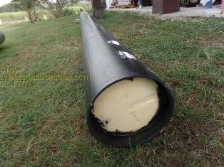 Took the pipe join mould off the pipe. It was very rough because the sticky tape formed wrinkles as the pipe moved from day time heat to cool night temperature. I had already sprayed the gelcoat so nothing I could do about it then. We patched it up a bit and just use it. First flange on the mould.