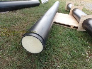 Extra foam was cut back to where it needed to be, some with internal locator, so cut back inside the pipe. 2 pipes were started with internal locator as a plug to stop the foam falling out the bottom and 4 pipes started with the cone on the bottom. For external locators we cut a short piece off the end of the pipe, reduced the diameter and welded into the end as a locator. We did this before we started making the nose cones. The locator is to join 3 pipe lengths together.