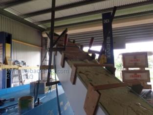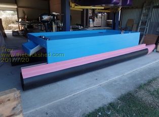 We have also set about making another pontoon shape. Plastic coated timber was used for the temporary mold. Made one pontoon and filled with foam.