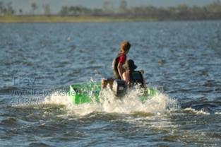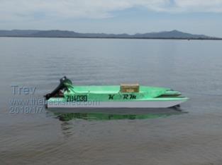 With 3 people on board (Grandad, Son/Dad & Son) at full throttle (186A), 17km/hr. That’s 1km/hr slower with the extra 40kg. I tried to match the 14.5A but the closest I could get was 15A and the speed was measured at 5.5km/hr. When I moved to the front (balance the boat better) the speed rose to 6.0km/hr.