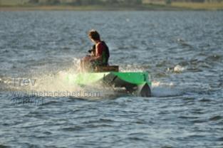 Then off to the water to again to test. The cav plate was level with the surface of the water at rest, which turned out to be too high. As soon as power was applied, the prop cavitated. We did manage to get it up on the plane once by going around in circles to increase the water level in the tunnel. No speed record, the GPS was flat.