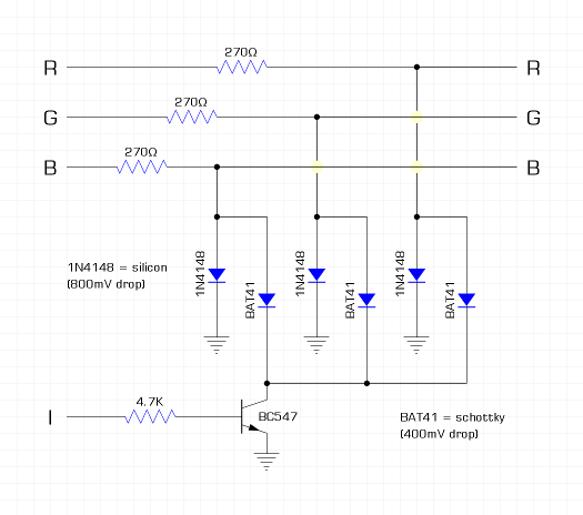 oops, i should have selected the BAT42: https://www.vishay.com/docs/85660/bat42.pdf that will get us back to a maximum Vf of 400mV @ 10mA. it does look like there are better choices for the NPN transistor, and i could have used a much lower base resistor to help things along too. i'll let others experiment as i'm not using the VGA version myself. cheers, rob :-) Edited 2022-01-19 23:45 by robert.rozee |