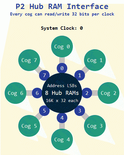 While it's true that the worst case scenario is that a cog has to wait 16 clocks to access the hub (the old P1 only), you wouldn't do this for super time critical operations. Each cog has a local 2K (496 longs) of memory. The Prop supports mixed memory models: My_time_critical_routine COG 'This will launch in a cog and never access the hub '@80MHz this executes 20MIPS Do waitpeq state, mask 'execution halted until pin equals (waiting fast) 'alternatively waitpne (not equal) ' do whatever, after the pin equals the mask Loop For other non critical code, you specify LMM (large memory) instead of COG to utilise the hub. If you need faster than 1/20,000,000 sec, you need the P2 |