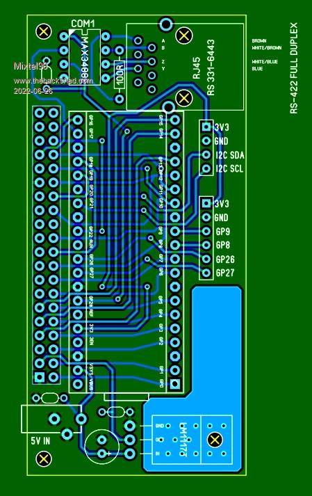 Mixtel90 said  This one has full duplex RS-422 on a RJ45 socket (not using the ethernet wires) and an I2C port brought out to a header with GND and 3V3.