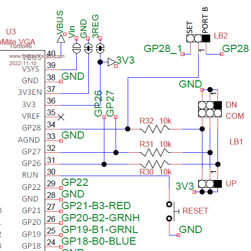 Looking at the 2.0 schematic, where is the pull-up resistor on GP28 when attaching an Atari joystick to port B ?