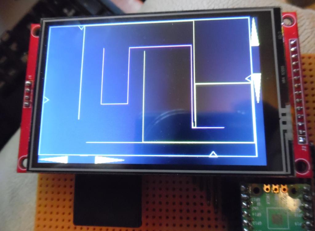 Here's the finished game for ili9488 lcd to demo gui area touched and pixel read and logic that used 75% less code than if then. Hope someone finds it useful. thanks for the help. This version has 3 computer opponents. ![]() 'tron ili9488 'OPTION GUI CONTROLS Must be set up in command before use 'each control is 52 bytes,it's rounded up to 2048, 'so total controls is 2048/52=39. Use that even using only 4 controls. 'CLS disables gui area. use box to cls. OPTION EXPLICIT OPTION DEFAULT NONE OPTION DEFAULT INTEGER OPTION BASE 1 'arrays start at 1 dim px,py,pdx,pdy dim cx(3),cy(3),cdx(3),cdy(3),cpa(3) dim ts,tr,csc=0,psc=0,cm cls 'define touch areas gui area 1,0,285,72,26 'left button gui area 2,112,285,96,26 'right button gui area 3,448,0,32,72 'up button gui area 4,448,114,32,96 'down button 'draw direction buttons triangle 2,312,66,305,66,319,rgb(yellow),1 triangle 192,312,130,305,130,319,rgb(yellow),1 triangle 471,2,479,66,464,66,rgb(yellow),1 triangle 471,192,479,130,464,130,rgb(yellow),1 start: 'init players start positions px=400:py=rnd*200+60:pdx=-1:pdy=0 cx(1)=rnd*300+80:cy(1)=70:cdx(1)=0:cdy(1)=1:cpa(1)=1 cx(2)=rnd*300+80:cy(2)=230:cdx(2)=0:cdy(2)=-1:cpa(2)=1 cx(3)=rnd*80+80:cy(3)=rnd*80+220:cdx(3)=1:cdy(3)=0:cpa(3)=1 'draw play area & 4 random triangles on border box 0,0,463,303,1,rgb(white),rgb(black) ts=int(rnd*200)+60 triangle 0,ts,12,ts+8,0,ts+16,rgb(White) ts=int(rnd*200)+60 triangle 461,ts,449,ts+8,461,ts+16,rgb(White) ts=int(rnd*360)+60 triangle ts,0,ts+8,10,ts+16,0,rgb(White) ts=int(rnd*360)+60 triangle ts,303,ts+8,293,ts+16,303,rgb(White) 'main do if pixel (px,py) >0 then 'player crashed box 0,0,463,303,1,rgb(white),rgb(black) text 150,140,"You Lost",l,5:pause 5000:exit do end if pixel px,py,rgb(magenta) px=px+pdx:py=py+pdy 'check user button pressed tr=TOUCH(REF) if tr>0 then select case tr case 1 'left if pdx=0 then pdy=0:pdx=-1 case 2 'right if pdx=0 then pdy=0:pdx=1 case 3 'up if pdy=0 then pdx=0:pdy=-1 case 4 'down if pdy=0 then pdx=0:pdy=1 end select end if 'computer move for cm=1 to 3 if cpa(cm)=1 then if cdx(cm)<>0 then if pixel (cx(cm)+cdx(cm),cy(cm)) >0 then cdx(cm)=0:cdy(cm)=(py>cy(cm))-(py<cy(cm)) end if else if pixel (cx(cm),cy(cm)+cdy(cm)) >0 then cdy(cm)=0:cdx(cm)=(px>cx(cm))-(px<cx(cm)) end if end if cx(cm)=cx(cm)+cdx(cm):cy(cm)=cy(cm)+cdy(cm) if pixel (cx(cm),cy(cm)) >0 then cpa(cm)=0'computer crashed if cpa(1)+cpa(2)+cpa(3)=0 then box 0,0,463,303,1,rgb(white),rgb(black) text 200,140,"You Won",l,5:pause 5000:exit do end if else pixel cx(cm),cy(cm),rgb(yellow) end if end if next cm pause 50 loop goto start Edited 2023-03-21 03:28 by stanleyella |