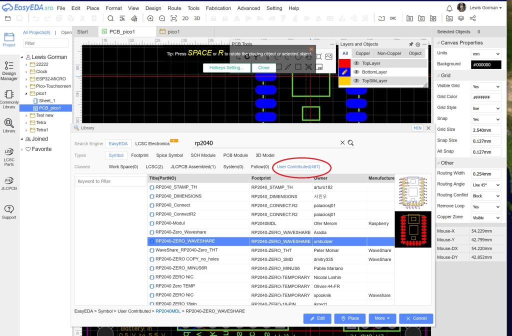 I will give easyEDA a try as I am getting tired of building parts.