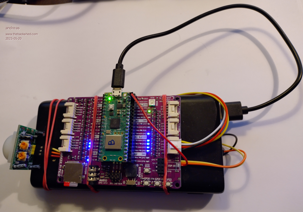And this is "webmiteb" the sensor pico connected to the PIR, akku and maker pi pico pcb.