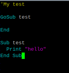 GOSUB is the old way of calling subroutines The manual has a good description of calling SUBs and FUNCTIONs Jim VK7JH MMedit |