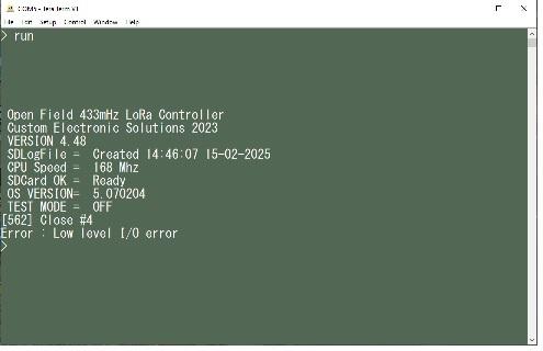 Unfortunately this latest event resulted in the program failing to a prompt but the mmbasic code was still in memory. I do have this sub.