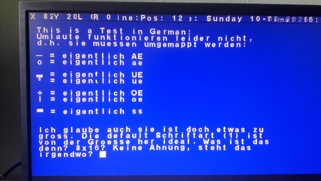 This was leading me to the false assumption the new DOS-font just has to be 224 and we are all good. For example the Unmlaut "ü" (kleines ü!) has the ASCII value of
