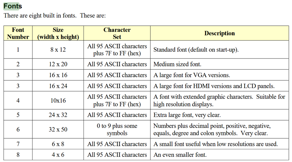 I think he is referring to the fonts(8x8 and 16x16) on the first page of this entry.