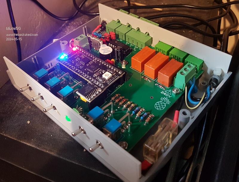I did consider using SSRs for the mains switching but I'd already been given the relays. Being a bit tight I decided not to spend more money on it. :)  I'd mainly have gained PCB area, but the width of each relay system is decided by the width of the connector used. That's a 3-pole as they don't make a 2-pole in a screwless type.