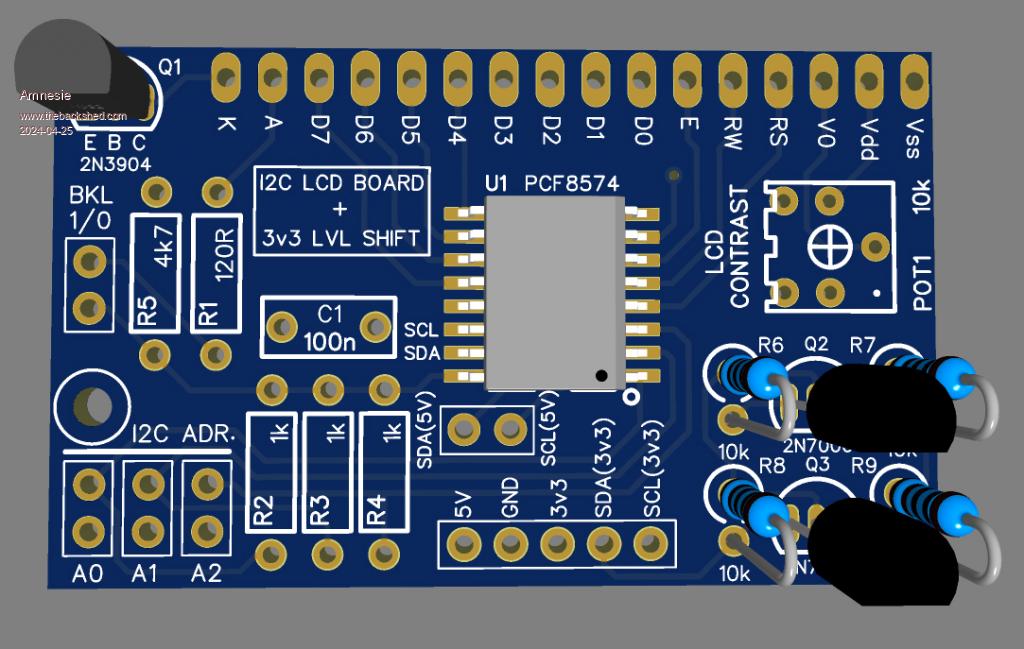 Main focus (besides 3v3) was to get rid of all SMD package components... except the PCF8574 of course.