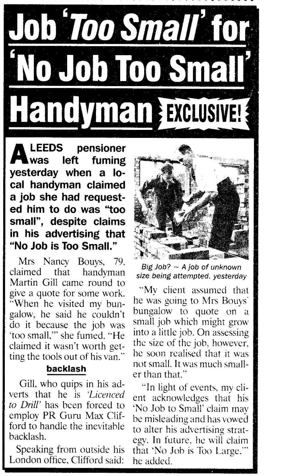 Billboard: "Tree Fellers Wanted" Seamus: "Would you look at that Paddy, just our luck, they're wanting tree fellers and there's just the two of us" |