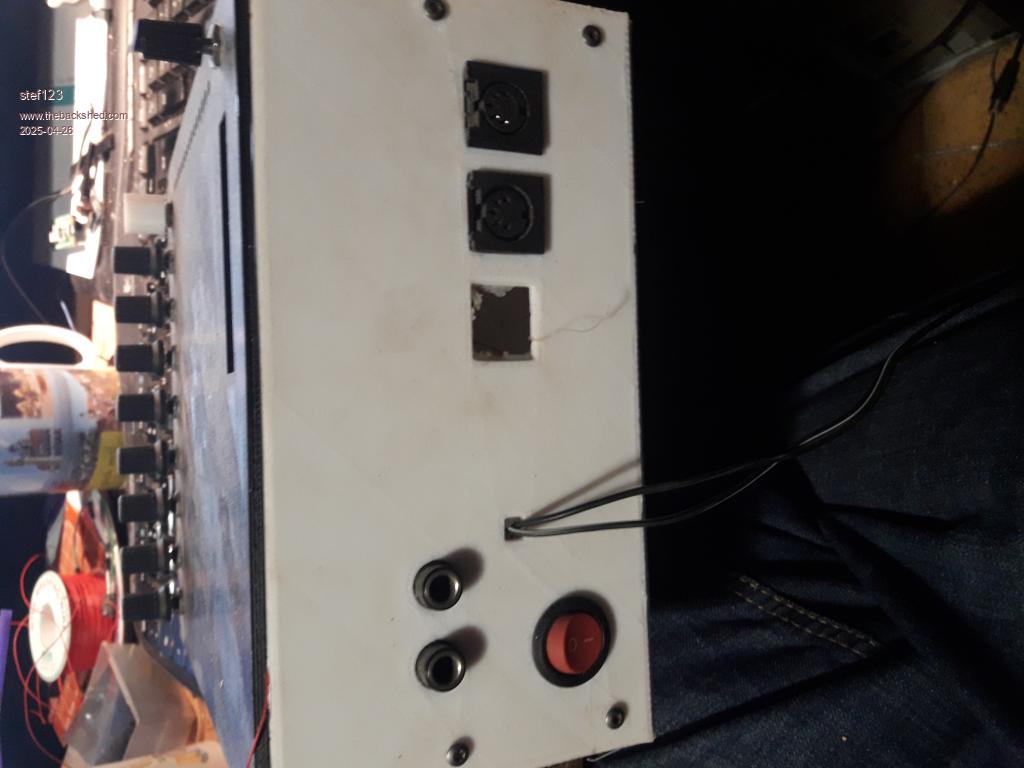 Currently it makes some trouble after powering it up. It was never fully finished, but running. This Synthesizer features "stacking" of multiple sounds at the same time. I've chosen four, so you can get four different sounds with four different filter settings, ADSR envelopes and so on. They can be set up individually, or all together at once.