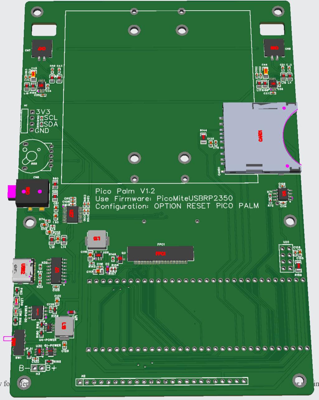 Hi tabemann I've ordered updated cards so will see how it looks when those arrive. The big changes from the original will be: Keyboard scanned by the RP2350 (6x12 scan matrix) I2S audio using PIO to generate the I2S output DS3231 RTC on board. True memory mapped 8Mb PSRAM In addition, I've developed a RGB332 framebuffer based driver for the ST7796S display with the screen updates done on the second processor. This gives a huge performance improvement over the current driver. All my code will be available on https://github.com/UKTailwind/PicoMiteAllVersions so feel free to copy the various drivers. I won't update the github until I've tested on the new PCB. I'll be interested to try your Forth port. I used Forth many many years ago but will need to re-learn to even get started. |