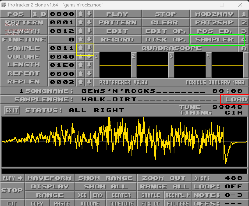 Then just load your Sample at this slot, close the Sampler and Save the MOD File.