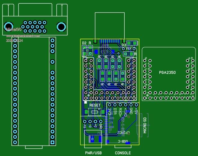 Hi Mick, Don't give up early. Under the CP2012 there is plenty of room for a MC4822 DAC in SO8 package. About GPIO pins. The rows you did not populate, can have a row of pins on the top side. So they would be accessible. The non-populated pins also have 2 grounds. So that would be usable. It would be nice (for case design) to also have the PWR/USB upside down, so CONSOLE and PWR USB-C's will be in one line. Easier for case design. Volhout Edited 2026-03-25 00:04 by Volhout PicomiteVGA PETSCII ROBOTS |