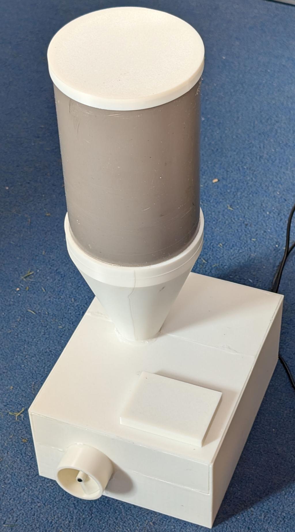 Everything 3D printed. STLs available if anyone wants them. Uses archimedian screw to deliver the food.