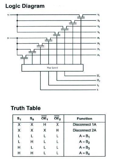 Here is the Logic Diagram and Truth Table from the datasheet...