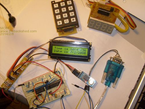 This is just an example. I took Geoff's i2c RTC example for Maxi/Mini and displayed the time and date to a LCD. Plug in the Keypad and use it to change the date/time settings or drive a menu or with a data expander, manually or automatically switch relays etc. The Chinese RTC shown also has temperature readings available plus a pad for a eeprom.
