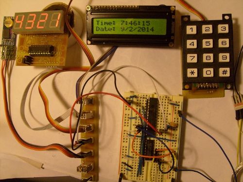 @Grogster, we are in the right year now. The test set up is essentially a clock running in a loop. The keypad is polled at the top of the loop and drops out to a menu subroutine to alter the registers then back into the loop.