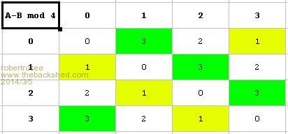 green and yellow represent the two different directions of rotation, while white cells are the 'illegal' states where a transition has been skipped. |