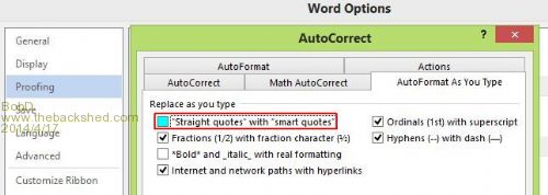 If users wish to turn off Word's Smart Quotes here is how in the later versions.