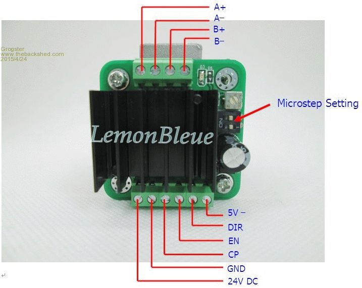 Hi Grogster, glad you got it going. I love using these little units. They work quite well. I am using them with little nema 17 motors with 24vdc and they are great. If you look around on the web, you can find them cheap and also the same units with the parts on the otherside of the board so you can mount a heat sink like these . Have fun, it can get a bit frustrating (stepper motors) but still fun can be had. EDIT... Talk about CHEAP |