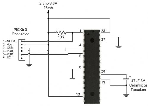 I forgot to mention that I am powering the chip externally. I had previously tried powering it from the Pickit 3 and had the same problem. Also I am using the tantalum capacitor.