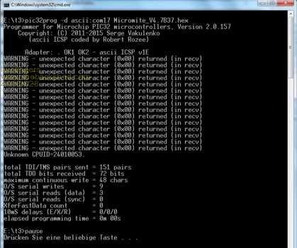 PIC32prog.exe = 0% MMFash.exe = 50% (avg. 47.5%) 50% means 100% for one core! P32P_GUI = 0% 2016-01-30_010349_P32P_GUI_r3_lite.zip Your P32P_GUI works very well with no measurable load! @Jim Again: this is not a issue for me! It doesn't matter if I have to wait 120s or 150s. Just something remarkable.