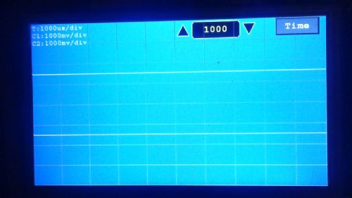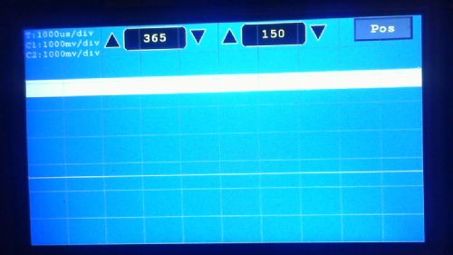 This is starter code for a 2 channel oscilloscope using a MM+ and a 800x480 SSD1963 display configured using the normal OPTION LCDPANEL command. Starter code means that there is no GUI and of course to be properly useful the MM+ needs a programmable attenuator/gain stage building out of standard analogue hardware as a front end to the ADC. However, the guts of the oscilloscope are fully worked in so far as it supports: * 800x480 display divided into 10x8 divisions (the graticule lines are just visible in the picture) * 2 channels at speeds up to 1.8 million samples per second per channel with 10-bit resolution * continuous screen updates at a rate of 20 traces per second * individual on/off channel switching * programmable timebase specified in usec/division * automatic display scaling if ADC cannot satisfy specified usec/division * separately programmable amplitude for each channel in milli-volts per division * free-running, or triggering off either one or both input channels with separately programmable positive or negative slope * Trigger timeout that returns control to basic if no trigger occurs with 0.5 second All of the above is controlled by one CFunction "scope": i= scope(microsecondsperdivision, toggle, channel1buff(), channel2buff(), c1pos, c2pos, c1trig, c2trig ,c1mvperdivision,c2mvperdivision) ' Parameters for call to CFunction "scope" ' ' Returns the scaling factor used for the display or a large number if triggering is enabled and has timed out ' A scale factor of 1 means every x-coordinate has a unique value ' ' microsecondsperdivision: specifies the number of microseconds to scale the display for each graticle line ' note: durations less than 100uSec will use scaling. i.e.every other x-coordinate will be missed if scale = 2 ' toggle: initialised to 0, used by the CFunction to control its double buffering ' channel1buff: buffer used for channel 1, used as 2 buffers of 800 x 16-bit words ' channel2buff: buffer used for channel 2, used as 2 buffers of 800 x 16-bit words ' y-position for channel 1: specifies the screen position of zero volts on channel 1 in rows from the bottom of the display ' use any negative number to turn off the channel ' y-position for channel 2: specifies the screen position of zero volts on channel 2 in rows from the bottom of the display ' use any negative number to turn off the channel ' trigger for channel 1 ' specifies the ADC reading and direction to trigger the trace for channel 1 (-1024 to +1023) ' a zero value means triggering is disabled for this channel ' a positive value triggers when the ADC reading passes the trigger value in a positive going sense ' a negative value triggers when the ADC reading passes the absolute trigger value in a negative going sense ' trigger for channel 2 ' specifies the ADC reading and direction to trigger the trace for channel 2 (-1024 to +1023) ' a zero value means triggering is disabled for this channel ' a positive value triggers when the ADC reading passes the trigger value in a positive going sense ' a negative value triggers when the ADC reading passes the absolute trigger value in a negative going sense ' NB: if both trigger levels are set to zero the scope will free run ' millivolts per division for channel 1 based on VDD=3.3V ' millivolts per division for channel 2 based on VDD=3.3V ' Using this the current test main program is absolutely trivial: CPU 120' The CFunction will automatically compensate for CPU speed but obviously the higher the speed the better option explicit option default none dim integer i,j=0,toggle,channel1buff(400),channel2buff(400),microsecondsperdivision=50 dim integer y1pos=90, y2pos=30, c1mvperdivision=200, c2mvperdivision=1000, c1trig=400, c2trig=0 setpin 16,ain 'Channel 1 setpin 12,ain 'Channel 2 colour rgb(white),rgb(blue) cls font 2 do i= scope(microsecondsperdivision, toggle, channel1buff(), channel2buff(), y1pos, y2pos, c1trig, c2trig ,c1mvperdivision,c2mvperdivision) if i>1 and i<1024 and j=0 then print "Warning reduced resolution x"+str$(i) j=1 endif if i>1024 then PRINT "No trigger" endif text 2,2,"T:"+str$(microsecondsperdivision)+"us/div" if y1pos>=0 then text 2,24,"C1:"+str$(c1mvperdivision)+"mv/div" if y2pos>=0 then text 2,46,"C2:"+str$(c2mvperdivision)+"mv/div" loop If someone would like to build a GUI for this to allow all the various parameters to the scope function to be controlled using the touch screen, let me know