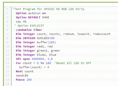 http://circuitgizmos.com/projects/microboard-micromite-projects/apa-102-led-strip/
