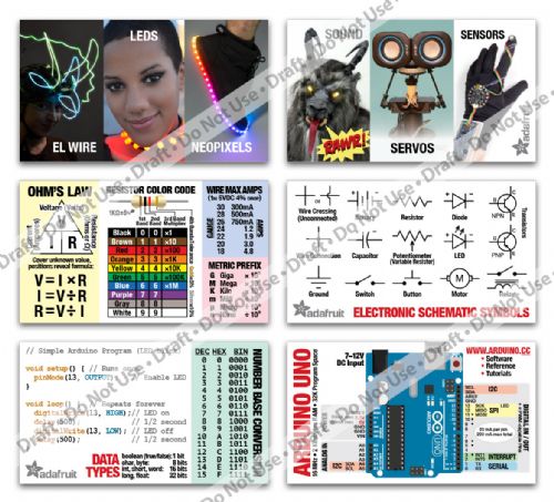 Hi All, Adafruit have released three Quick reference cards and made them available to the public to print for themselves. Unfortunately they are in Adobe Illustrator format (which I don't have) but if someone is able to convert them to a high quality JPG they could be useful to someone. The link to the originals is HERE Here is a sample Preview of what they supposedly offer.