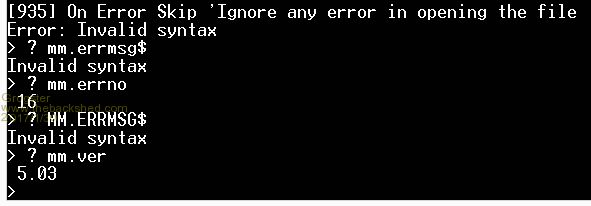 I think that we have two bugs here and hopefully I have hunted both of them down. The first - clearing all variables. When the error occurs in a subroutine the ERROR SKIP or IGNORE works OK but if it happens in the main program the variable table will be cleared (thanks Rob for finding that one). The second - working with files. If the error occurs when accessing the SD card on the MM+ the MM.ERRNO and MM.ERRMSG$ variables got confused (thanks Grogster for finding that one). I have fixed both of these in the final version of 5.3 (due out in a day or two). Geoff Geoff Graham - http://geoffg.net |