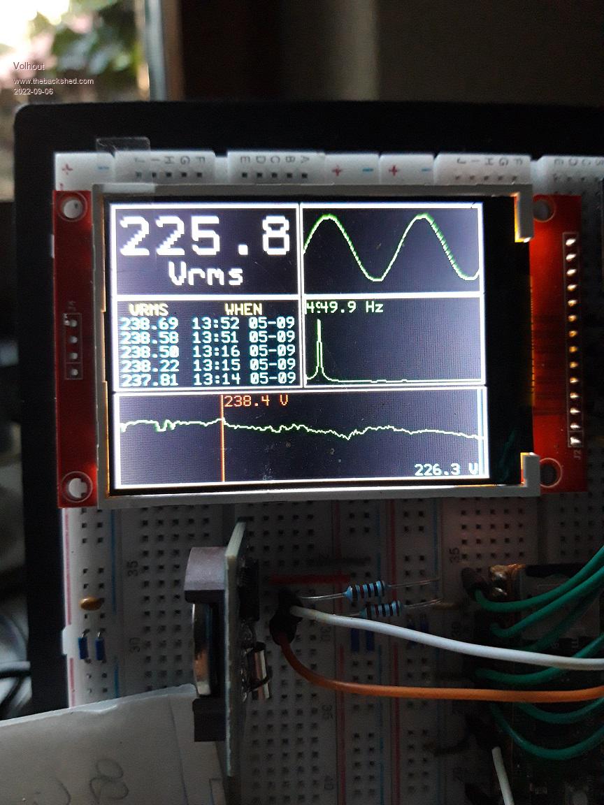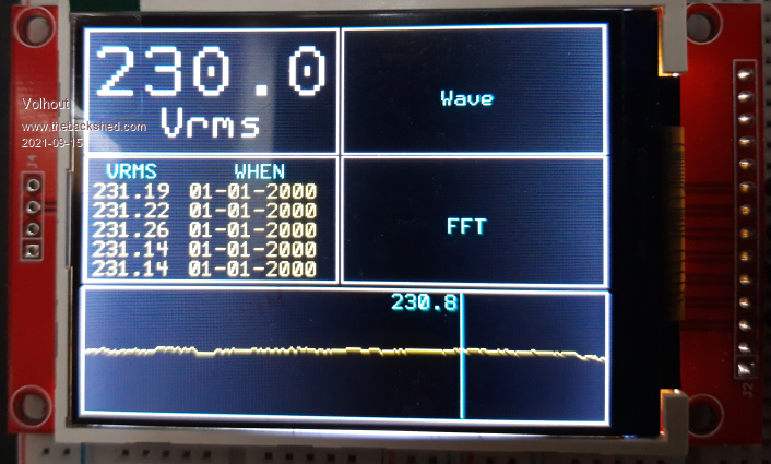 1/ Calculating the mains frequency from the FFT gave jittery results and some drift. Therefore the mains frequency is no measured using the picomite frequency measurement and some averaging.
