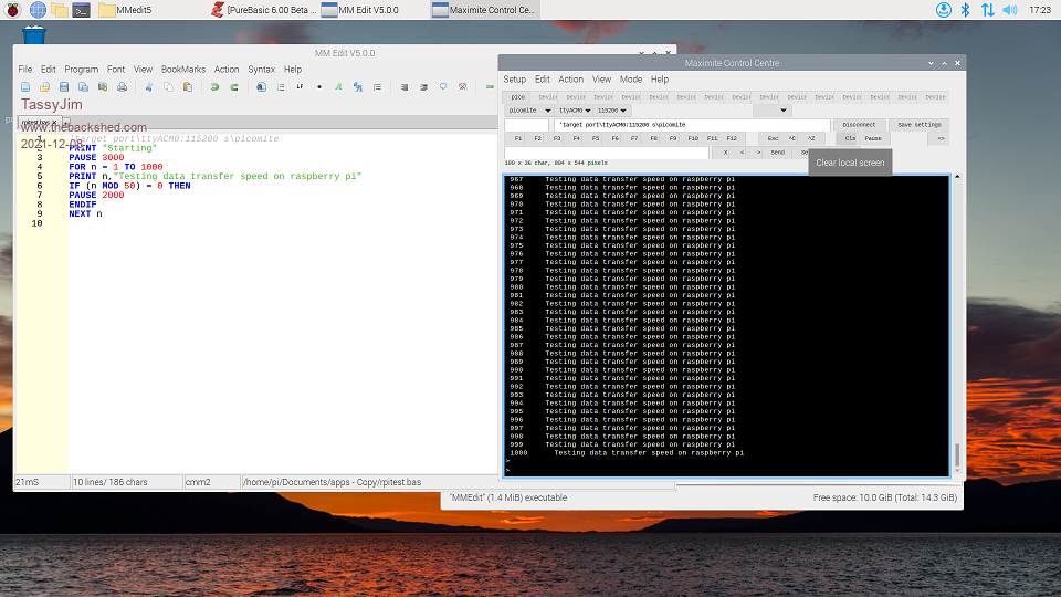 Another observation: when you have bad coding (to much data to print, the PC cannot keep up in the MMCC screen) and press the ^C button to stop the output, it takes quite a while until the rest of the serial buffer is printed.... Maybe you could simply stop printing after ^C (flush the buffer, keep what is on screen though).