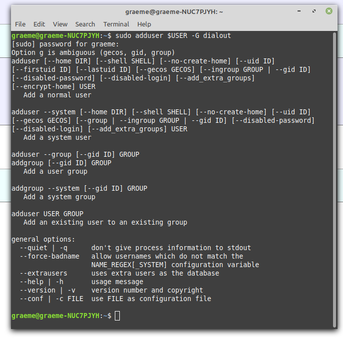to add the current user to the dialout group: